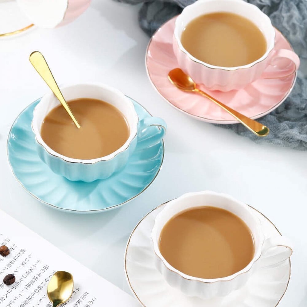 كوب سراميك مميز سعة 300 مل مع صحن لون وردي