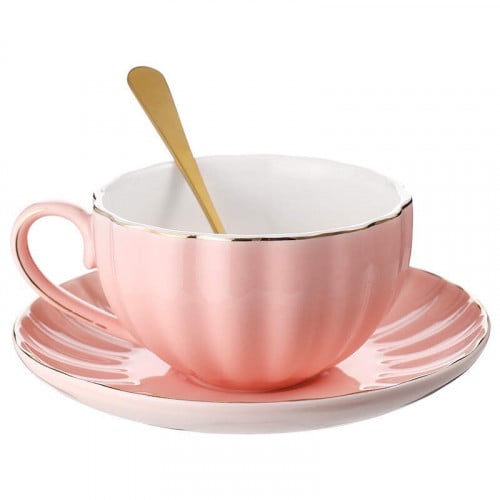 كوب سراميك مميز سعة 300 مل مع صحن لون وردي