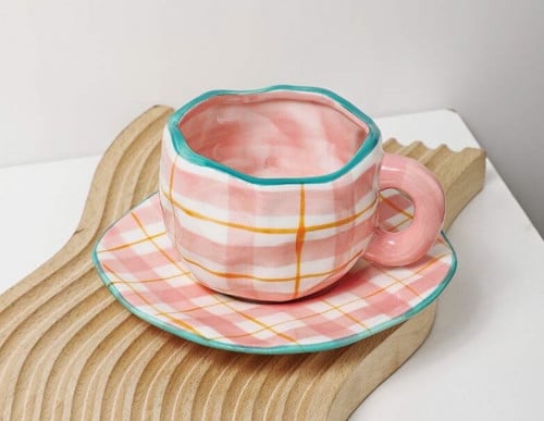 كوب اخضر اللون مصنوع من الخزف مزود بجدار سميك مع صحن