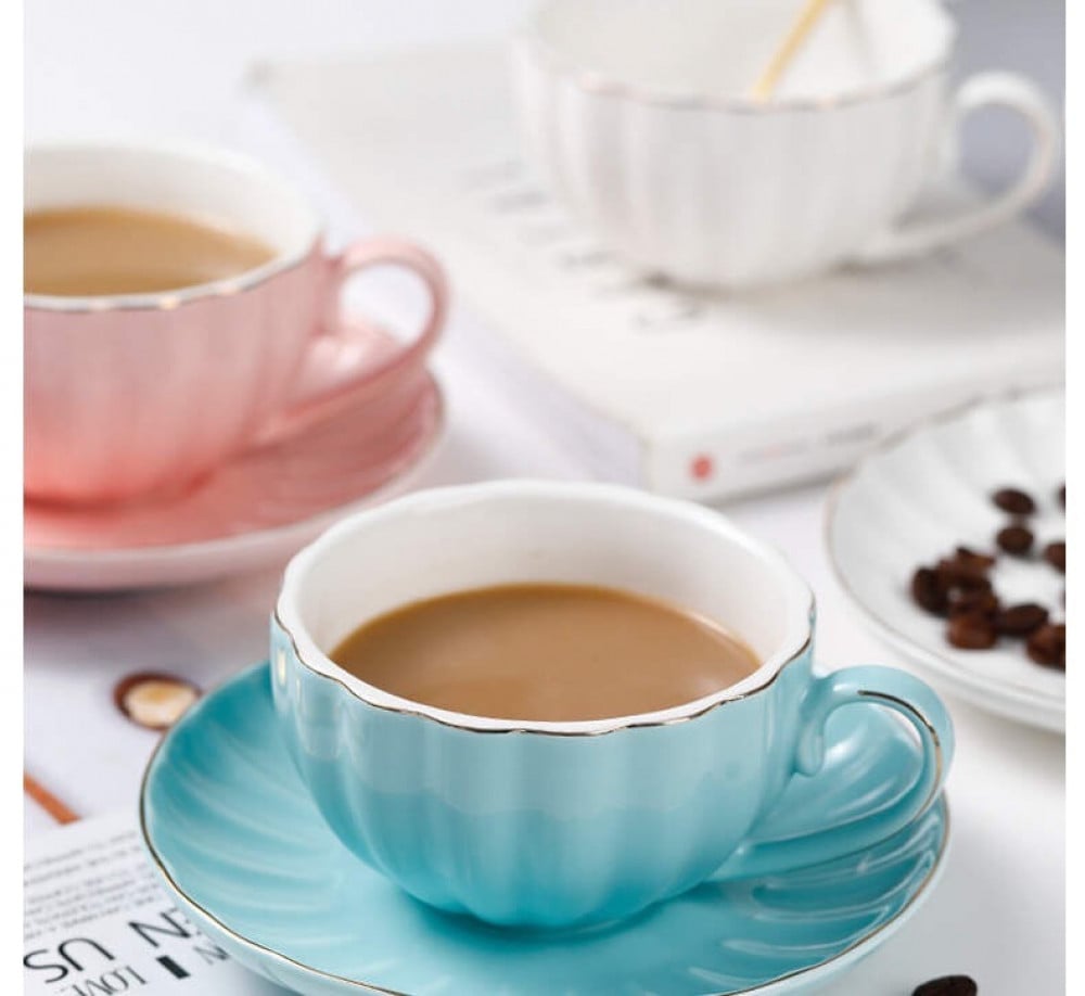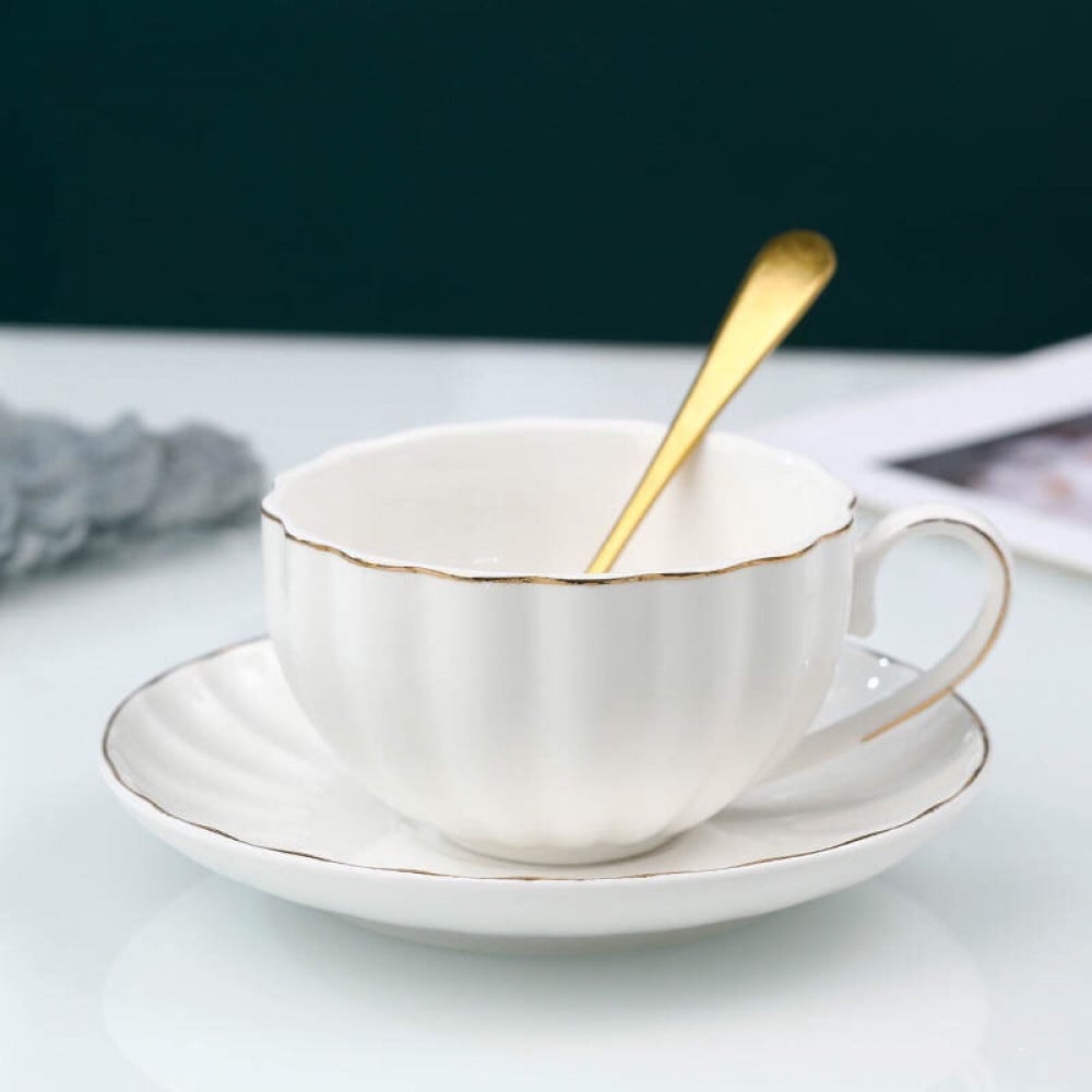 كوب سراميك مميز سعة 300 مل مع صحن لون ابيض