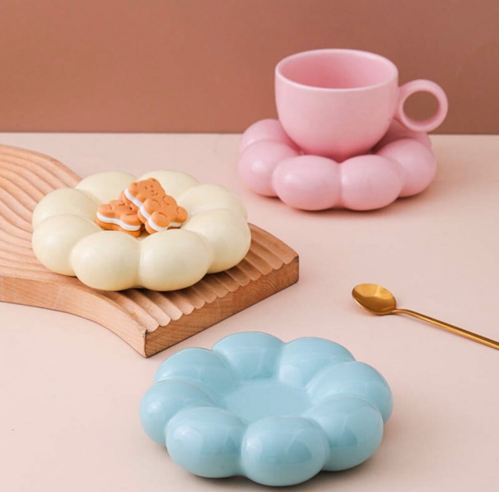 كوب سراميك بشكل مبتكر مع صحن فاخر سعة 200 مل